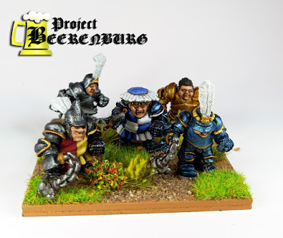 The final unit of Beerenberg's (initial 1,000 point) expeditionary force are the Burghers-at-Arms. These halflings represent the elite plutocracy of the city - merchants whose established wealth and power allow them the free time to train at arms. The three-company unit is based on the elite company profile with the militia racial trope and the doughty and heavy melee weapons traits. Although they will hit no harder than regular units of larger folk, their impressive Resolve will serve as a bulwark for the guild units to fight around.